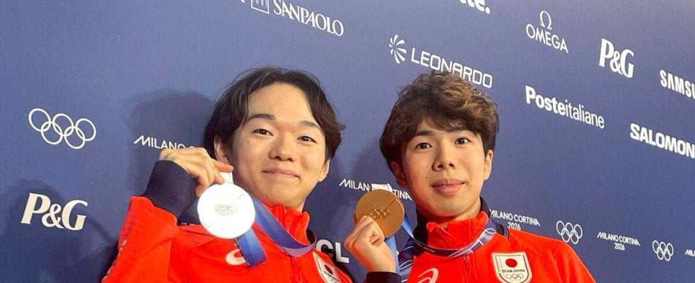 フィギュアスケート男子シングルで2大会連続銀メダルの鍵山優真(オリエンタルバイオ・中京大)と、銅メダルの佐藤駿(エーム…