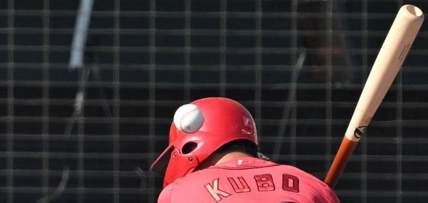 「練習試合、巨人-広島」(15日、沖縄セルラースタジアム那覇) 広島の久保が七回、頭部死球を受けた。投げた巨人・石川に…