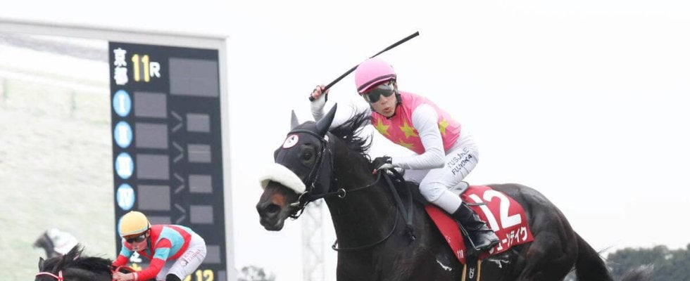 2着には1番人気のエリキング(川田将雅騎手)、3着には3番人気のエコロディノス(池添謙一騎手)が入った。