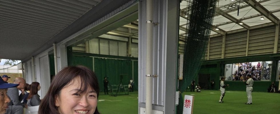 阪神タイガースが運営する女子硬式クラブチーム「阪神タイガースWomen」の第1期生で、松本国際高校(長野県松本市)女子硬式野球部・横井千晃監督(大体大出身)が、宜野座キャンプを視察に訪れた。