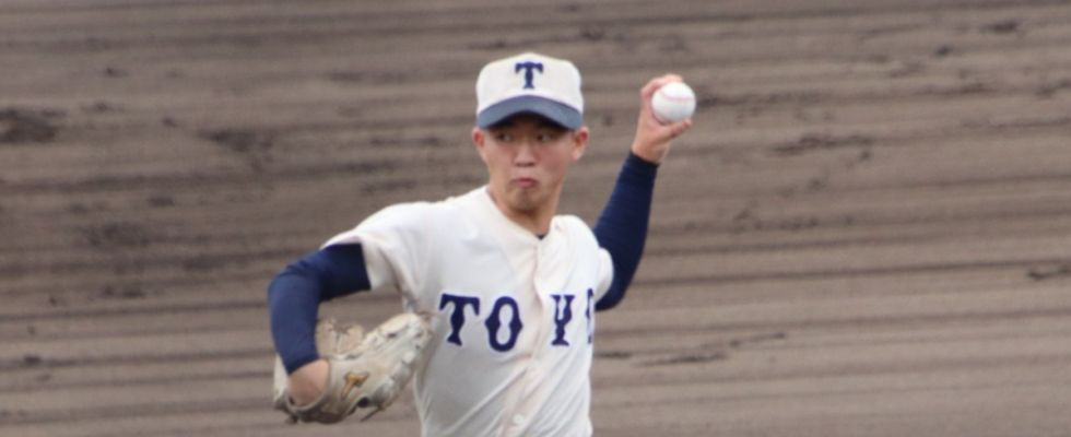 昨年、春夏連続で甲子園出場したチームには、阪下 漣投手、木下 鷹大投手の両右腕がいた。先輩がつけてきた背番号1を引き継ぐ左腕が、先輩たちを抜く成績を狙う。