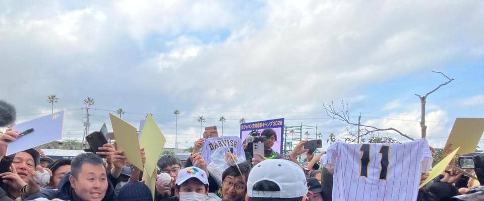 この日も練習の最後にサイン会が行われ、右腕の周囲にはファンが集まりものすごい熱気。断トツの一番人気だった。