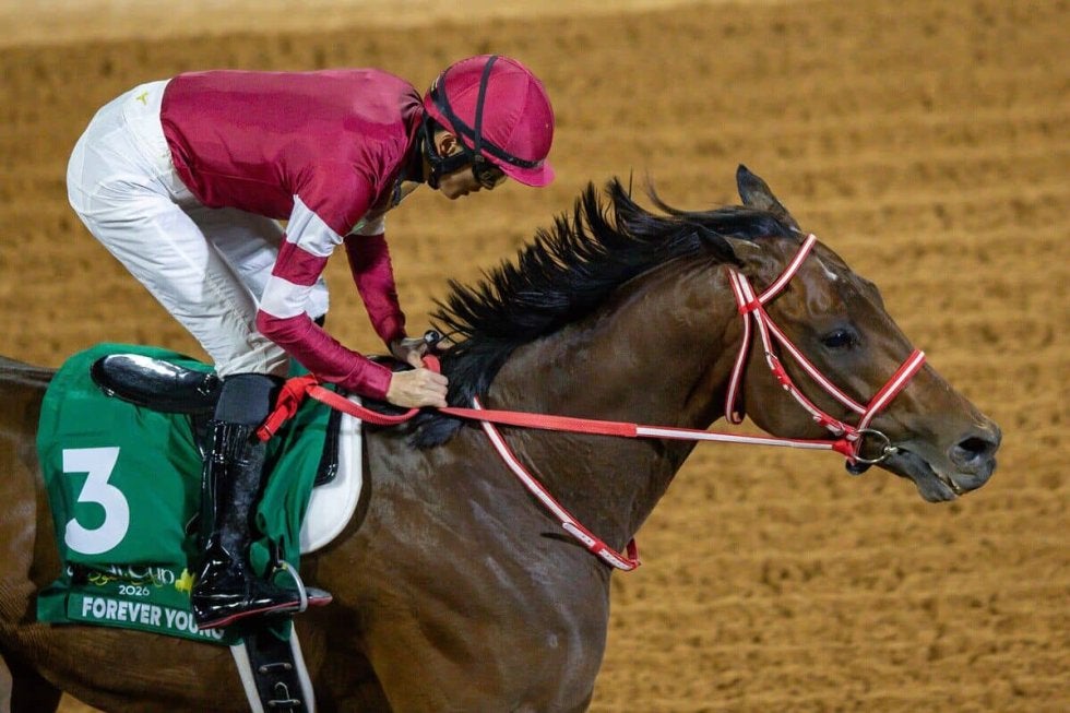 現地時間2月14日、キングアブドゥルアジーズ競馬場で行われたサウジカップデー第9R・サウジカップ(G1・ダート1800m・1着賞金1000万ドル=約15億円)は、坂井瑠星騎乗、フォーエバーヤング(牡5・栗東・矢作芳人)が優勝した。2着にナイソス(牡5・B.バファート)、3着にタンバランバ(せん6・H.アルジェハニ)が入った。勝ちタイムは1分51秒02(良)。