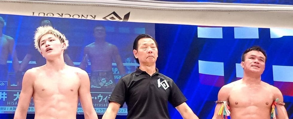 メインイベントでKNOCK OUT-REDライト級(-62.5キロ)王座戦が行われ、王者久井大夢(20=TEAM TAIMU)が挑戦者ゴンナパー・ウィラサクレック(33=タイ)と対戦。今大会から延長戦がなくなり、王座戦のジャッジは3人から5人にルール変更となったが、結果は久井の判定2-1でドローとなり、王者がドロー防衛を果たした。