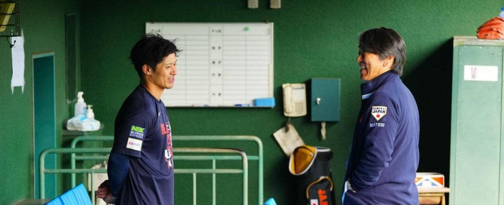 <侍ジャパン強化合宿>◇15日◇宮崎侍ジャパンの坂本誠志郎捕手(32=阪神)もヤンキースGM付特別アドバイザーの松井秀喜…