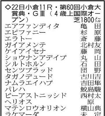 第60回小倉大賞典・G3は2月22日、小倉競馬場の芝1800メートルで行われる。