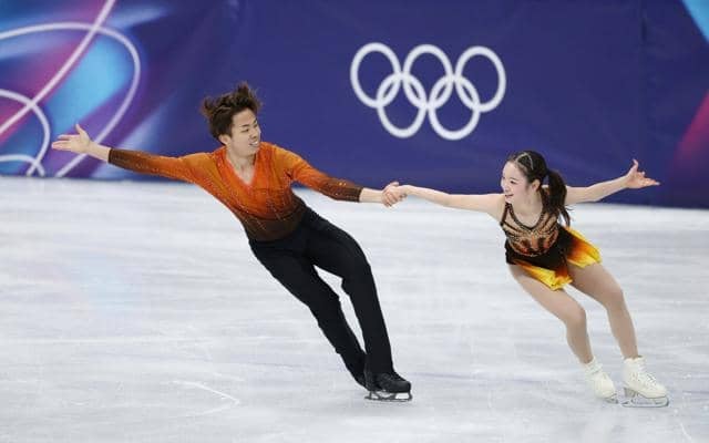 (15日、ミラノ・コルティナ冬季オリンピック〈五輪〉フィギュアスケートペア) 「ゆなすみ」こと長岡柚奈、森口澄士(すみ…