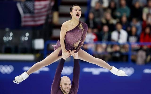 (15日、ミラノ・コルティナ冬季オリンピック〈五輪〉フィギュアスケート) ペア・ショートプログラム米国代表のエリー・カ…