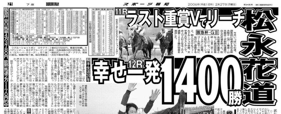 馬トク報知では、今年から過去の名勝負を当時の記事から振り返る【競走伝】がスタート。今回は2006年の阪急杯を取り上げる。当日は松永幹夫騎手(現在は調教師)が騎手として最終騎乗の日。引退に花を添えるブルーショットガンの激走だった。