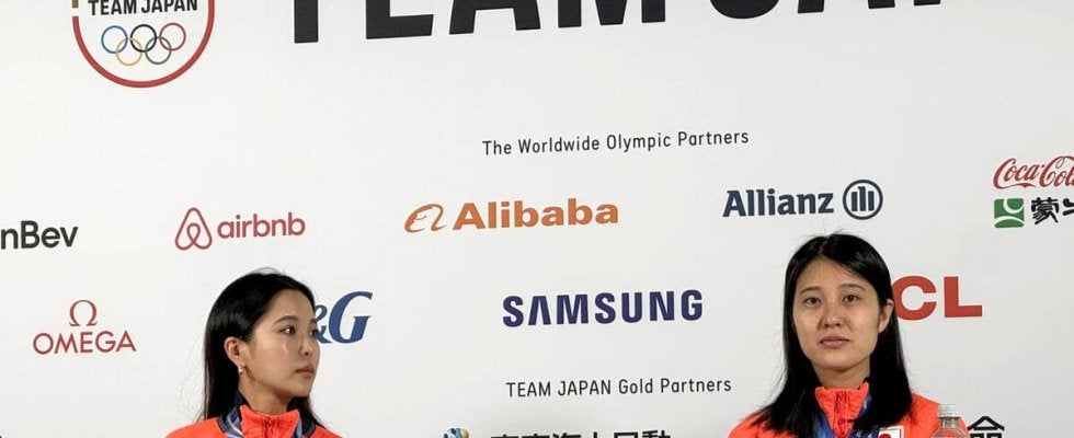 男女2人ずつで飛ぶ混合団体で銅メダルを獲得した高梨沙羅(クラレ)、女子個人ノーマルヒル銅メダルの丸山希(北野建設)が会見に臨んだ。