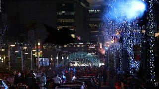 WRCジャパン:オープニングセレモニーを名古屋城前の愛知県体育館敷地で実施