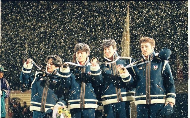 各国4人が飛ぶ「団体ラージヒル」で日本が金メダルに輝いた1998年長野五輪では、開催地の白馬村に大雪が降り、競技が一時中断した。