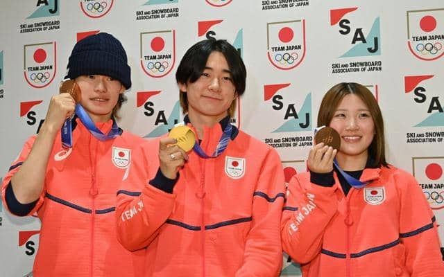 ミラノ・コルティナ冬季五輪のスノーボードハーフパイプでメダルを獲得した男女3選手が17日帰国し、羽田空港で取材に応じた…