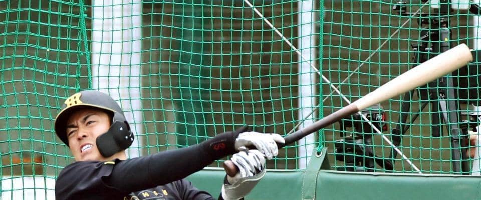 「阪神春季キャンプ」(17日、宜野座) コンパクトなスイングで捉えた打球が、グングン伸びていった。阪神のドラフト2位・…