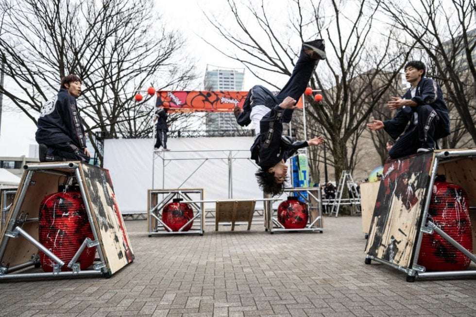 和太鼓の音色に合わせて披露されるオブスタクルややぐらを使った豪快なアクロバットの数々に観客たちは目を奪われ、代々木公園に偶然訪れた観光客や通行人も足を止めるなど多くの人々が日本最高峰のパフォーマンスに息を呑んで見届けた。