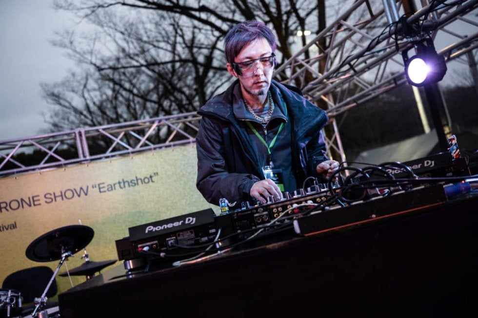 そしてDJタイムの後半を務め、野外ステージとドローンショーの特設ステージで聴き馴染みの良いセクシーなテクノを届けたのがDJ FUMIELU。DJ FUMIELUは音楽家の池場文紀のDJ名義。『宇宙っぽいテクノ』をコンセプトとするダンスミュージックで、オリジナルミックスを中心に最新の選曲を交えたセットをプレイする彼が、ドローンショーの前に夕方と夜空に合ったテクノミュージックで会場を盛り上げた。