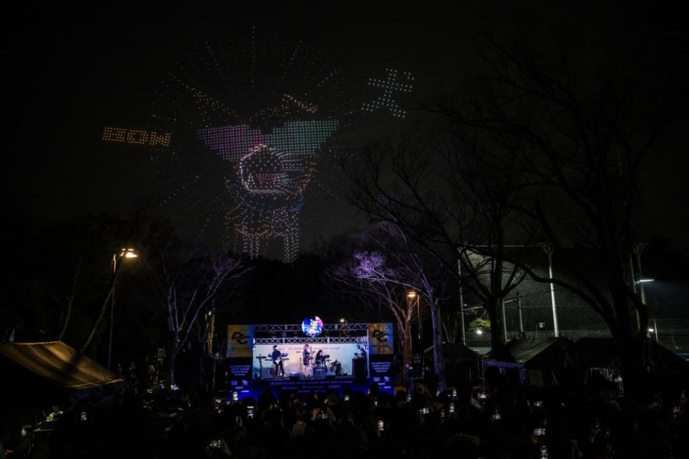 なお本ドローンショーには今回の情報を聞きつけてか、この日一番の観客が代々木公園に集まり人で溢れかえる中で、15分ほどのドローンショーをそれぞれが仲間やパートナー、家族などと色々な思いで非日常的なひと時を共有し楽しんでいた。