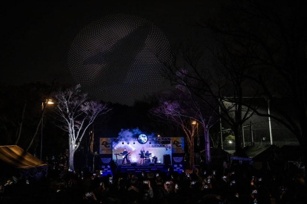 そして、そのドローンショーを音楽で盛り上げたのがDaisuke Hinata with encounter。このグループはプラチナ・ゴールドレコードホルダーでもある「Daisuke Hinata(日向大介)」が2013年に発足させたRockバンドで、アメリカ・ロサンゼルスで日向と出会ったリードボーカルのCarrie Suzukiと、本日Ryu Matsuyamaとしても参加したドラマー Jackson Suyamaにより編成されており、今回は夜空に舞うドローンと一緒にエモーショナルな気持ちにさせる見事なパフォーマンスで会場を包み込んだ。