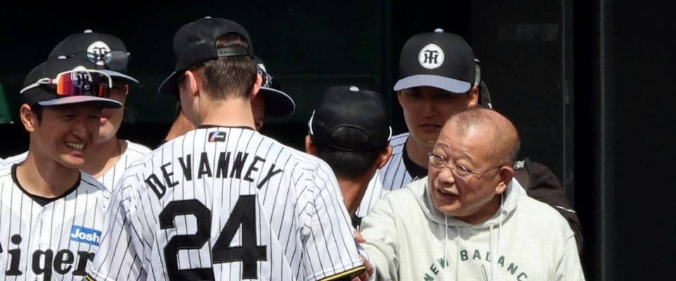 午後の練習開始前に三塁ベンチ前に登場し、選手らに訓示。選手からは時折、大きな笑い声があふれた。その後、野手陣との記念撮影や円陣にも加わるなど、わずか数分間だったが、終始なごやかなムードが流れた。