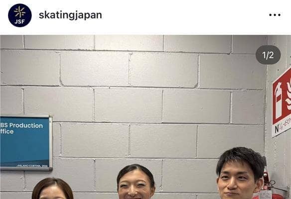 さらに、続く投稿では「どういう感じで応援していたかを再現している木原龍一選手 2人から黄金のバトンを受け取り、今日は全日本選手権よりは緊張しないで、後半は楽しく演技ができた坂本花織選手でした!」と記述。木原が応援風景を再現し、それに驚く三浦と坂本の様子をアップした。