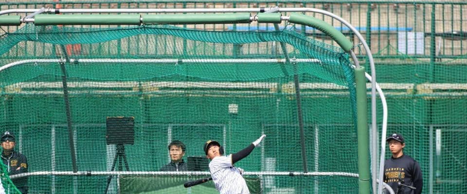 「阪神2軍春季キャンプ」(18日、具志川) 阪神のドラフト1位・立石正広内野手=創価大=が初めて屋外でのフリー打撃に参…