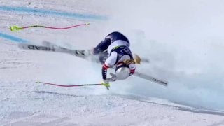 女子滑降で転倒し、雪面に激しく打ち付けられたボン(C)Getty Images ミラノ・コルティナ五輪のアルペンスキー女…
