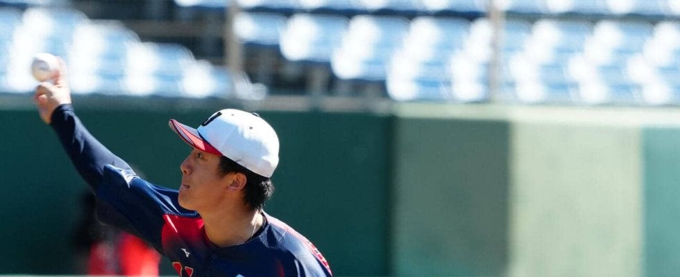 “ダルの魔球”に手応えをつかんだ。侍ジャパン北山亘基投手(26=日本ハム)がライブBPに登板した。佐藤への初球。外に逃げていくような軌道のツーシームが外角いっぱいに決まり「あれは感触が良かった。いい軌道で曲がってました」。小園との対戦では、フルカウントからカーブで遊ゴロ併殺打に打ち取り「(カーブは)ちょっと横曲がりした軌道もありましたけど、いい方向に進んでるんじゃないかな」とうなずいた。