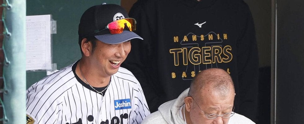 藤川阪神に突如、強力な味方がやってきた。午後のシート打撃が始まる直前だ。三塁側ベンチ前にテレビ撮影で訪れていた笑福亭鶴瓶が登場した。