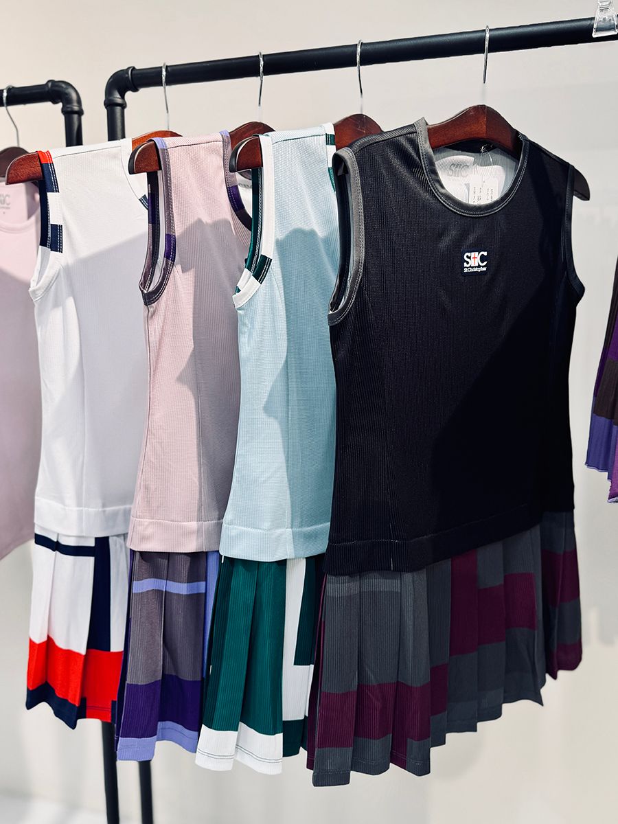 トリコロールを基調に、英国の伝統を現代的にアップデートするのがセントクリストファーだ。ブランドのルーツに立ち返りながら、現代のライフスタイルに寄り添う設計で、テニスのパフォーマンス性とデイリーウェアの快適性を融合。コートでも街でも自分らしく輝ける“ハイブリッドスタイル”を提案する。クラシックの美しさを、いまの感性で纏うコレクションが並んだ。