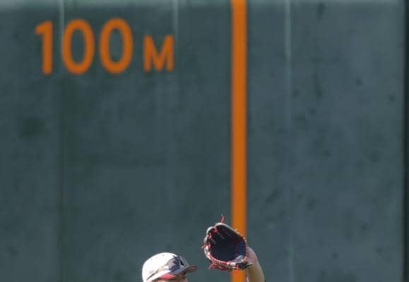 前日に特打の打球捕で周東と話し込んでいた森下。中堅守備についてコミュニケーションを図っていたとみられる。森下は昨年11月の宮崎合宿からセンターのポジションで練習を積んでおり、阪神の宜野座キャンプでも中堅守備を確認していた。