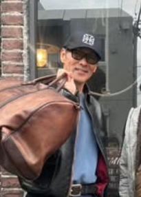 革の鞄を手に持ちながら、革のジャケットこ羽織ったコーディネートを公開した。
