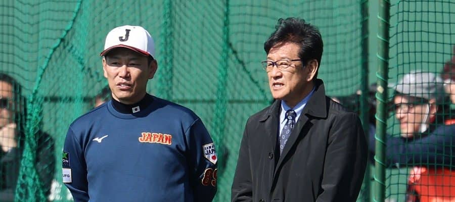 2023年大会で監督を務め、ダルビッシュ有投手(パドレス)、大谷翔平投手(現ドジャース)らと共に3大会ぶりの世界一奪還を果たした栗山監督。この日、前回大会で共に戦った牧秀悟内野手(DeNA)、周東佑京外野手(ソフトバンク)、牧原大成内野手(ソフトバンク)とも挨拶をするなどエールを送った。