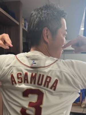 「浅村選手のを拝借…」と綴り、楽天の浅村栄斗から借りたものであることを明かした。