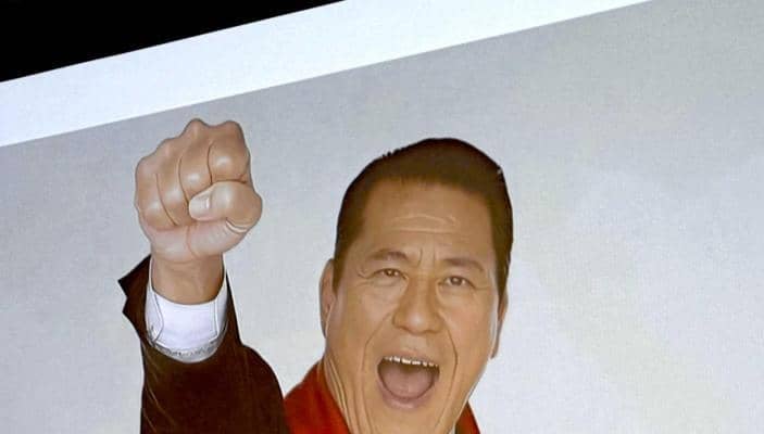 この日は手始めに、AIによって“復活”した猪木さんの音声動画が披露された。「元気ですかー?元気があればアンドロイド猪木もできます。高市総理、(衆院選での)驚きの300議席超え、スポーツ平和党が(現代に)あればわからなかったな。ハッハッハ」と冗談も交えて話し、「1、2、3、ダーーッ!」と右腕を突き上げた。