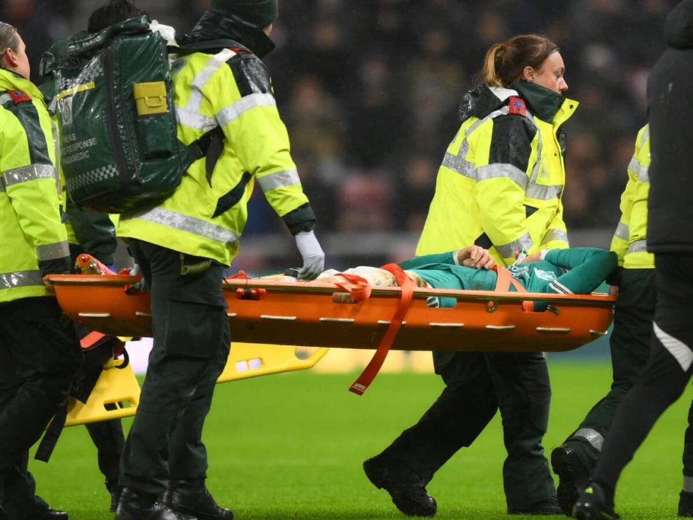 負傷して担架で運ばれる遠藤航。ワールドカップまでに復帰できるかは不透明だ