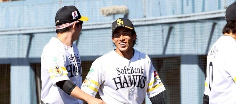 今宮健太内野手、川瀬晃内野手とともにハローキティも登壇して行われた発表会見。「ピンクフルデー」は5月8日から10日のロッテ戦で開催される。初日の8日に配布されるのは「ハローキティ ピンクフル限定ユニホーム」。大分県にあるサンリオキャラクターパーク「ハーモニーランド」の35周年を記念した特別企画で、球団史上初めてハローキティとコラボした貴重な一着となっている。
