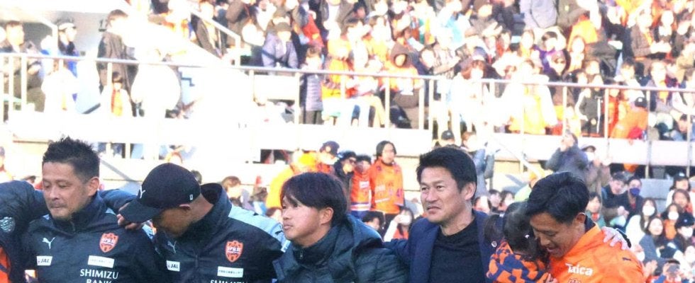 吉田監督が初めて勝ちロコに参加した。サポーターとともに応援歌に合わせて踊る勝利の儀式。スタッフと肩を組み、左右に揺れた。ゴール裏から飛び出した「吉田清水コール」には、笑顔で手を振った。「ホームで勝ちロコができたのはよかった。もう少し勉強してくればよかったですね。リズムが合わなかったので次はちゃんと踊りたい」と照れ笑いを浮かべて、初勝利の喜びをかみ締めた。