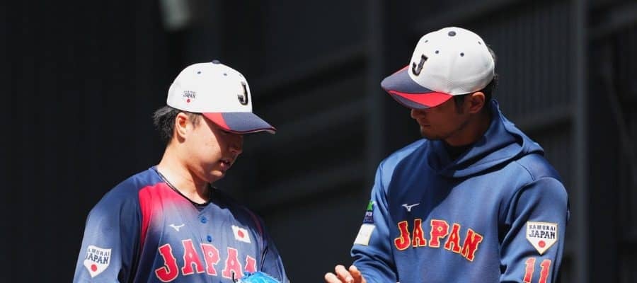 後ろで見守っていたダルビッシュは、佐藤柳の直球がミットに収まると、データが表示されるiPadを見て大きくうなずいていた。「キャッチボールからすごくいいフォーシームを投げていましたし、カーブもすごく縦割れのいいカーブを投げているなと。ブルペンでもトラックマンのデータを見ても、やっぱりフォーシームがすごく良かったので。ベース板の上でも強かったですし、すごくいいピッチャーだなという風に思いました」と評価した。