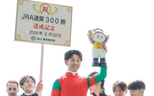 22日、東京競馬場4Rで行われた3歳未勝利(3歳・未勝利・芝1800m)で、3番人気マイネルグレート(牡3、美浦・鹿戸雄一厩舎)が第1着となり、荻野極騎手(栗東・フリー)はJRA通算300勝を達成した。