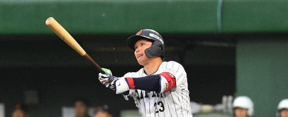 兄貴分の佐藤の5打点に次ぐ4打点。「アピールの場でもあると思うので、自分らしい打撃を心がけて頑張りました」。二塁ベース上では、ベンチへ釣りざおのリールを巻くようなパフォーマンスを披露。「まあまあ、模索中、模索中です。考え中です」。楽しむことも忘れない。全試合4番を任された24年のプレミア12でも発揮した勝負強さに加え、ムードーメーカーぶりもアピールした。