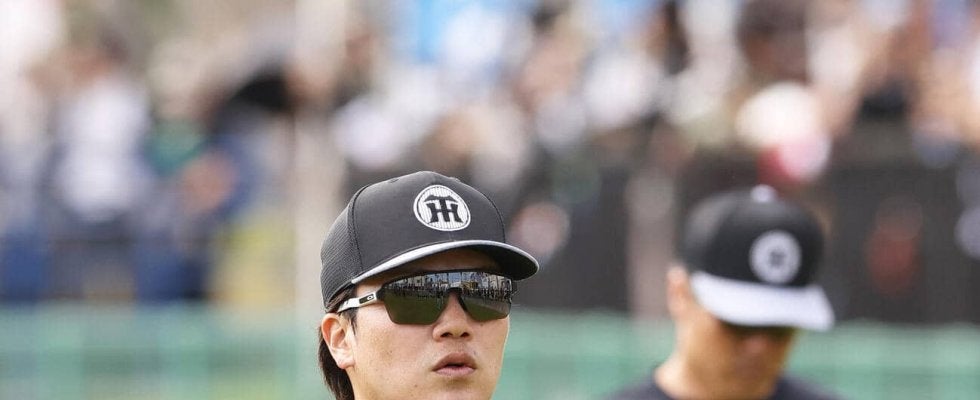 日本ハムのユニホームを着用したファンから大歓声を浴び、笑顔でサブグラウンドに登場。「さちとらコンビ」としてバッテリーを組んでいた日本ハム山崎福也投手(33)とも笑顔で言葉を交わした。