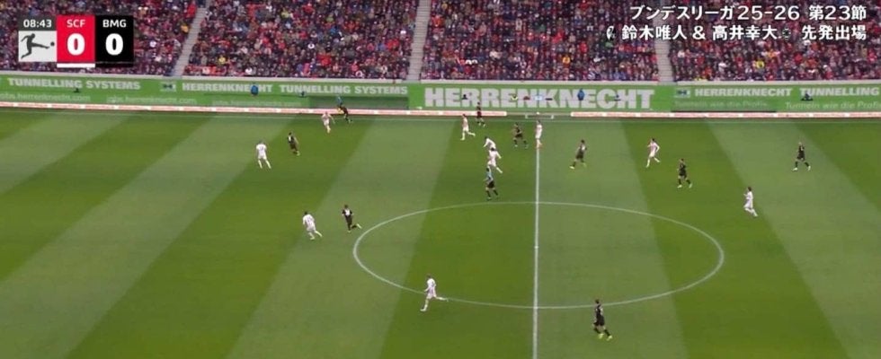 ボルシアMGは日本時間2月22日、ブンデスリーガ第23節でフライブルクと対戦。高井は3バックの右で起用され、トップ下でプレーしたMF鈴木唯人との日本人対決を迎えた。