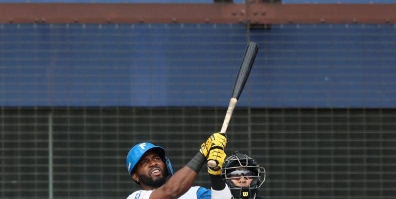 「オープン戦、日本ハム-阪神」(23日、エナジックスタジアム名護) 日本ハムの新外国人、カストロがオープン戦初出場を果…