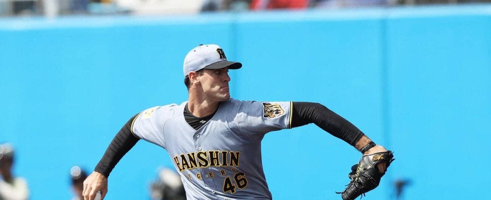 球団最長身投手の203センチ右腕は緩急を使った投球も披露。球速以上に伸びると評される角度ある直球に加え、120キロ台のカーブも多投した。1回2死で昨季の本塁打&打点王のレイエスを遊飛に抑えた球もカーブだった。「相手のバランスを崩すのは目的なので、そういう意味でもしっかりできたと思います」と手応えを示した。藤川監督は今後について「(2軍の)教育リーグで投げていこうかなという風に思っています」と調整予定を明かした。