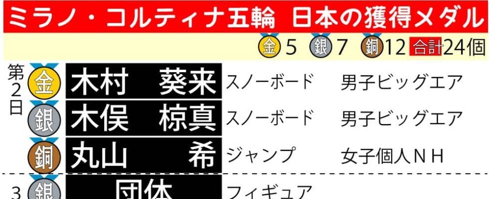 【イラスト】ミラノ・コルティナ五輪 日本の獲得メダル一覧