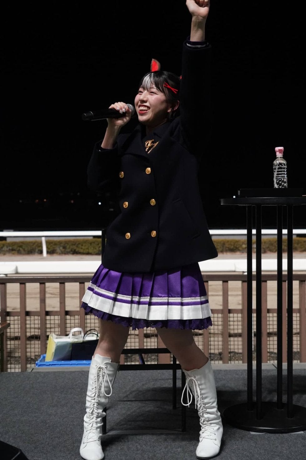 昨年2月にウマ娘の新キャストとして発表された夏目、久保田、真名瀬の3人はこの日、本馬場入場アナウンスなどを担当し、最終レース終了後、ウイナーズサークルにてスペシャルトークショーを行った。