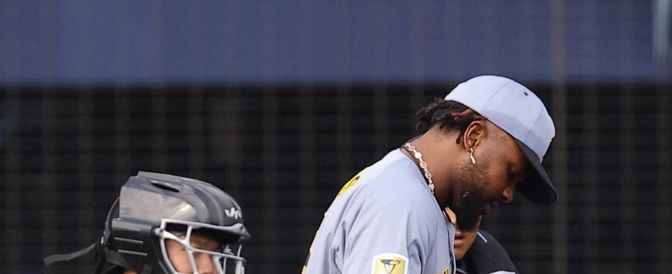 23日のオープン戦で右手小指に打球が直撃した阪神ラファエル・ドリス投手(38)が一夜明けた24日、キャッチボールを行った…
