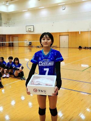 最優秀選手賞に輝いた森田新菜には、鳥取県産のカニが贈呈された
