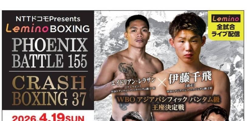 プロボクシングの大橋ジムが、4月19日に東和薬品ラクタブドーム・サブアリーナ(大阪・門真市)で開催される「Lemino BOXING PHOENIX BATTLE155 CRASH BOXINGvol.37」の対戦カードを発表した。