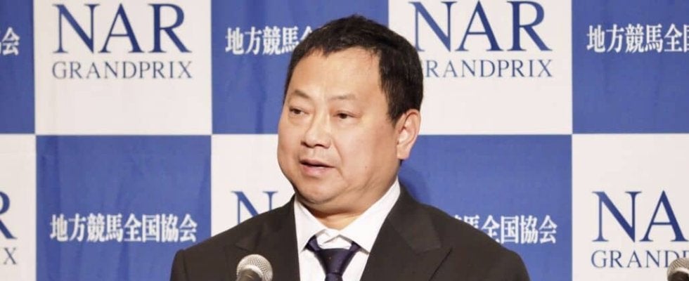 2月24日、都内で開催された「NARグランプリ2025」の共同記者会見に、最優秀勝利回数調教師賞を受賞した打越勇児調教…